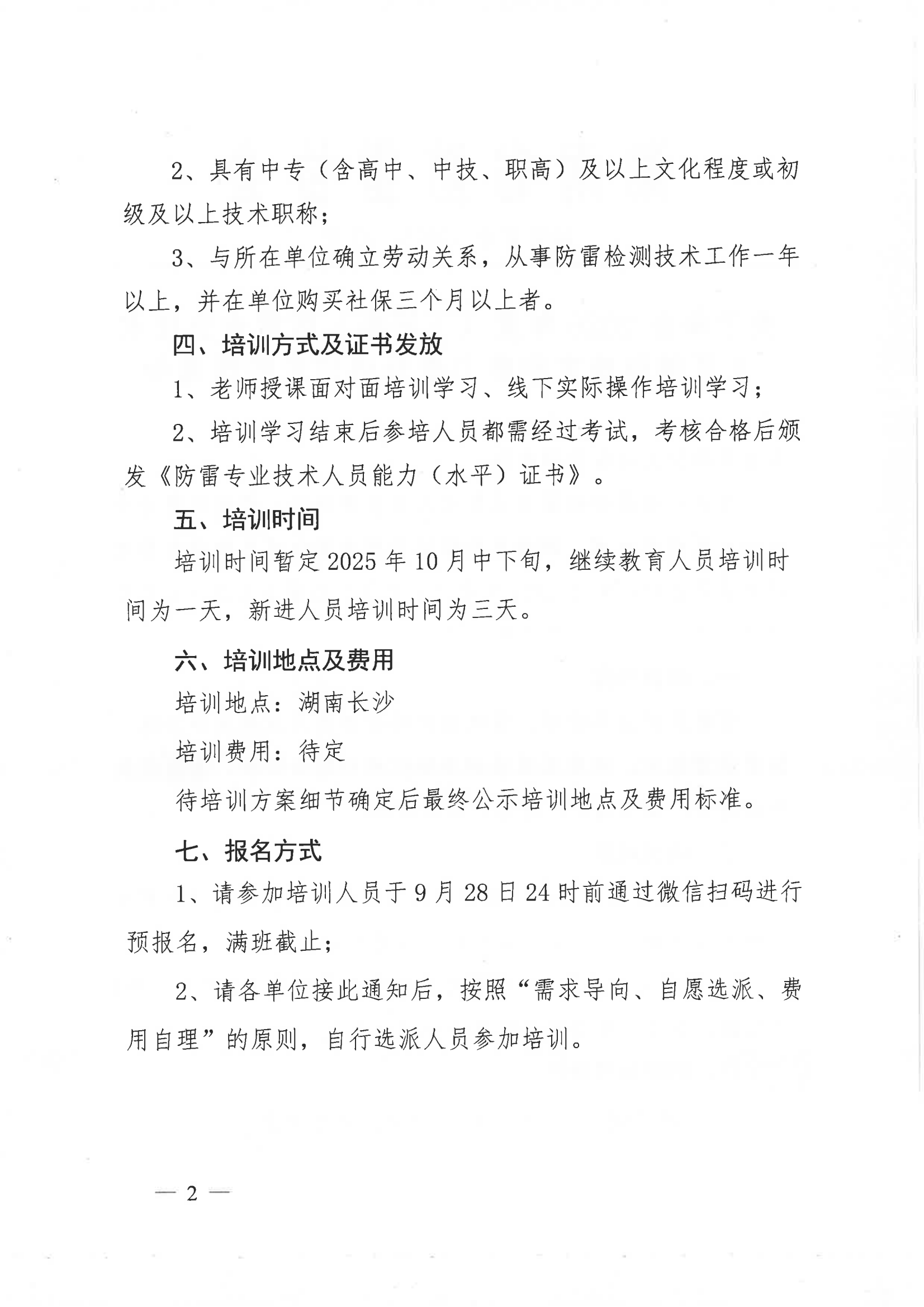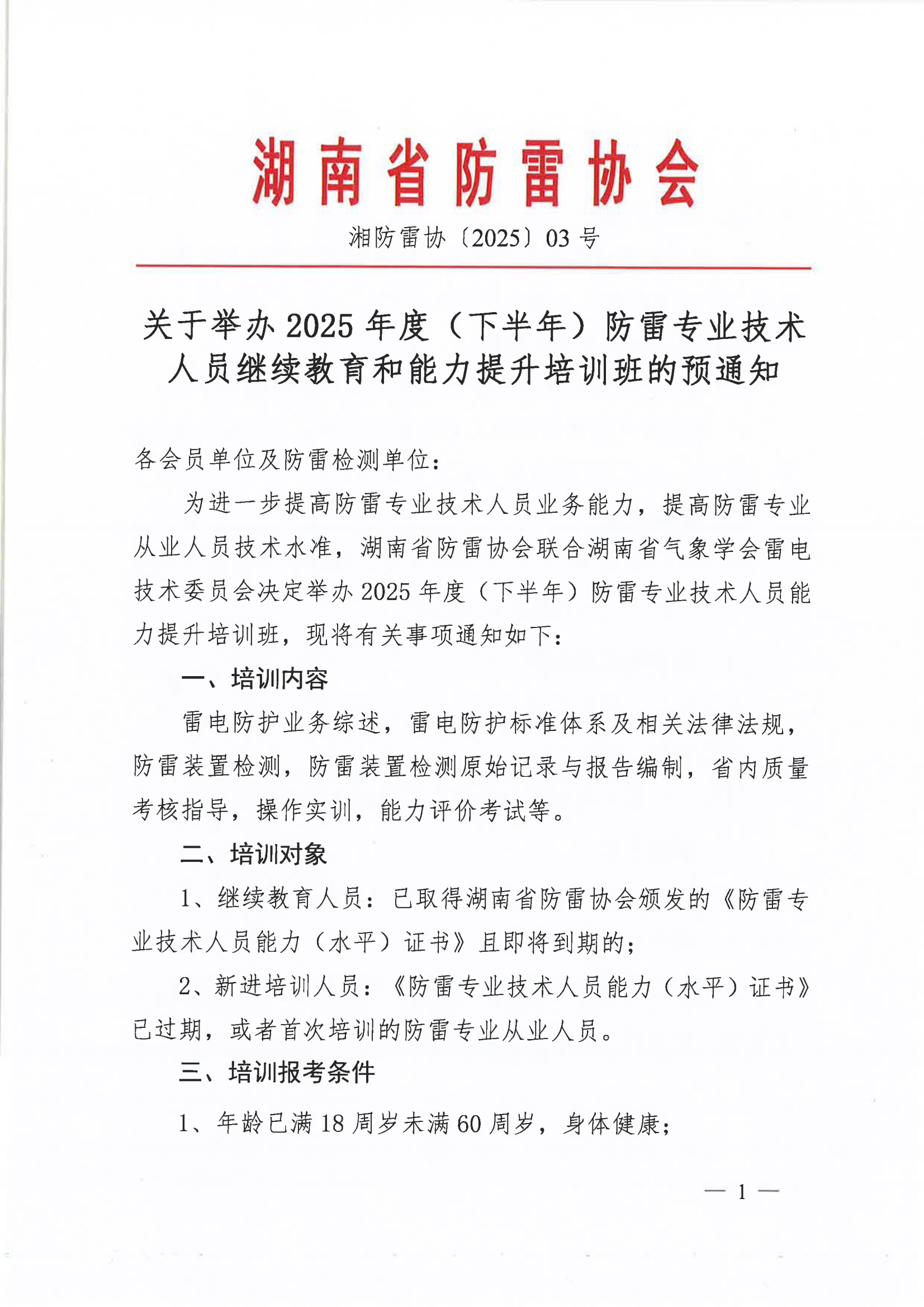 关于举办2025年度(下半年)防雷专业技术人员能力提升培训班的预通知