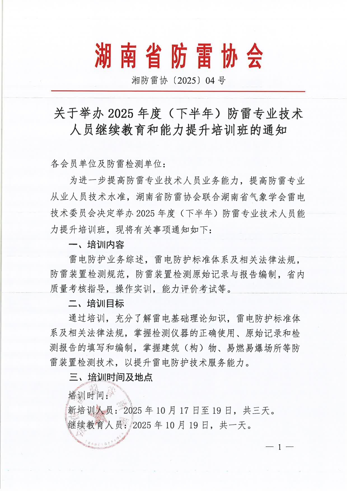 关于举办 2025 年度(下半年)防雷专业技术人员继续教育和能力提升培训班的通知