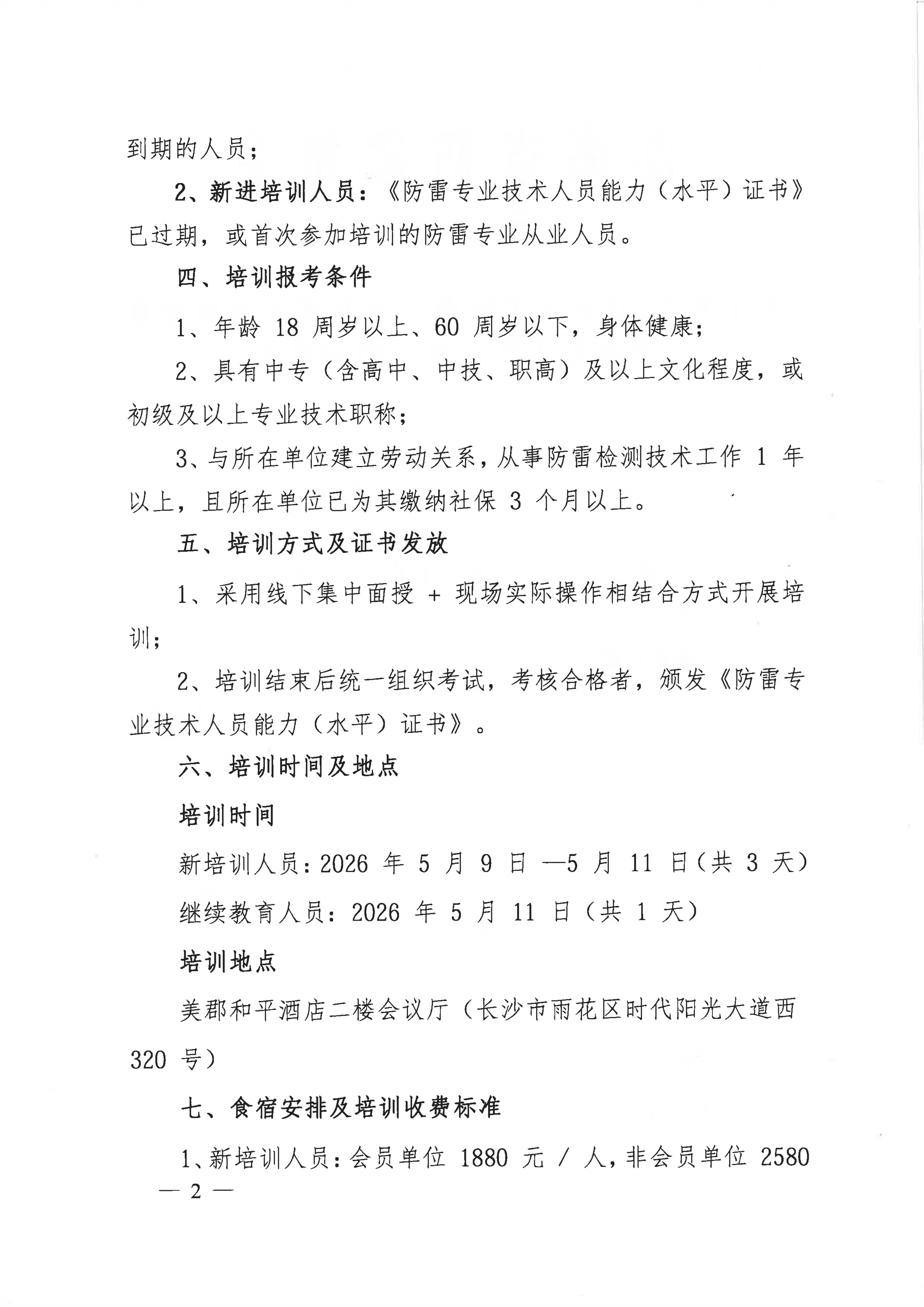关于举办2026年度(上半年)防雷专业技术人员继续教育和能力提升培训班的通知